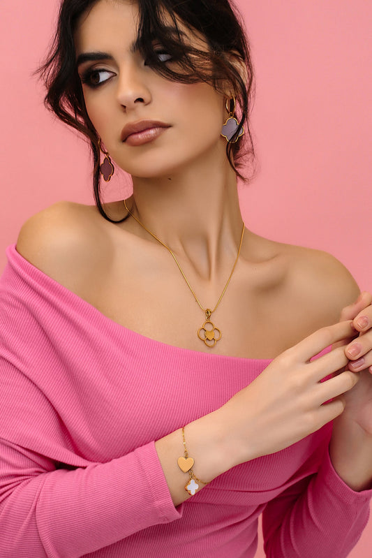 Pink Heart Enamel Bangle