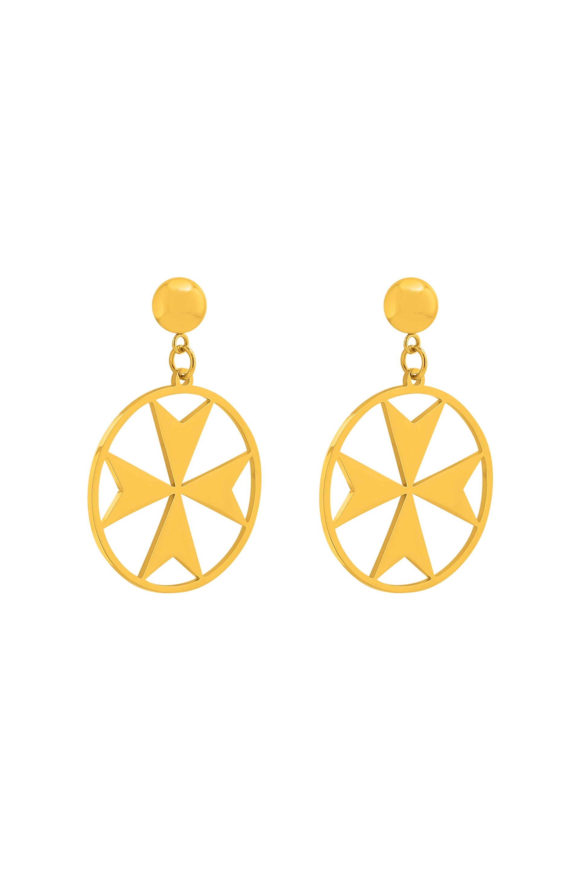 DESCRIPTION The 'Maltese Cross Hoops' are available in two sizes and are designed to make an eye-catching statement. Crafted in gold-plated stainless steel, these earrings will make you stand out from the crowd to ensure that all eyes are on you whenever you enter the room. This model is definitely an opportunity to wear your national heritage with pride!