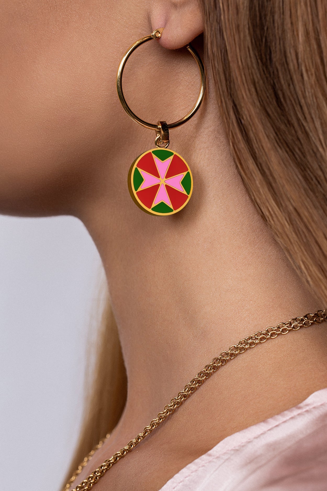 Fuchsia & Green Maltese Cross Pendant Earring Set