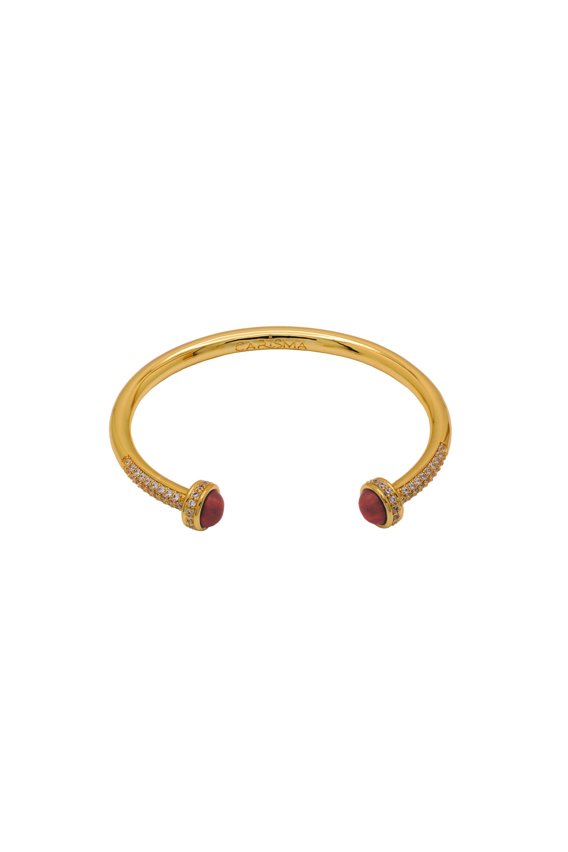 DESCRIPTION Delicately elegant, this finely designed bangle was born to be a star. With its pink spheres that look like the insides of a shell and its encrusted crystal finishing, this is no ordinary piece. Layer it with other bangles for that rich, street style look or slip on the matching ‘Pink Sphere Ring’.