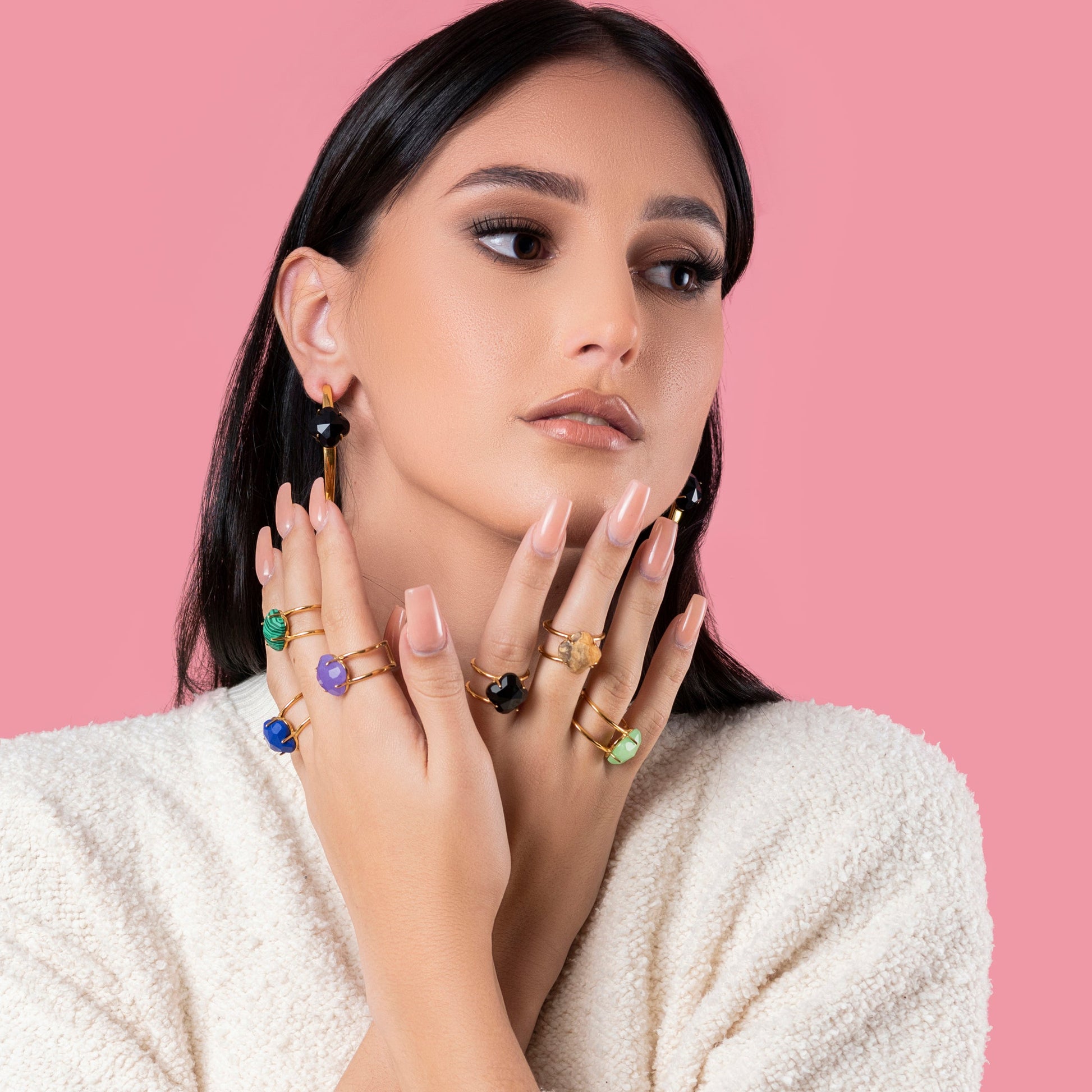 DESCRIPTION Available in 4 sizes and with a cool double band to keep the stone of your choice firmly in place, the ‘Stone Station Ring’ will serve as the perfect framework for your unique stone. Crafted in gold plated stainless steel, you can wear this ring over and over again without it tarnishing.