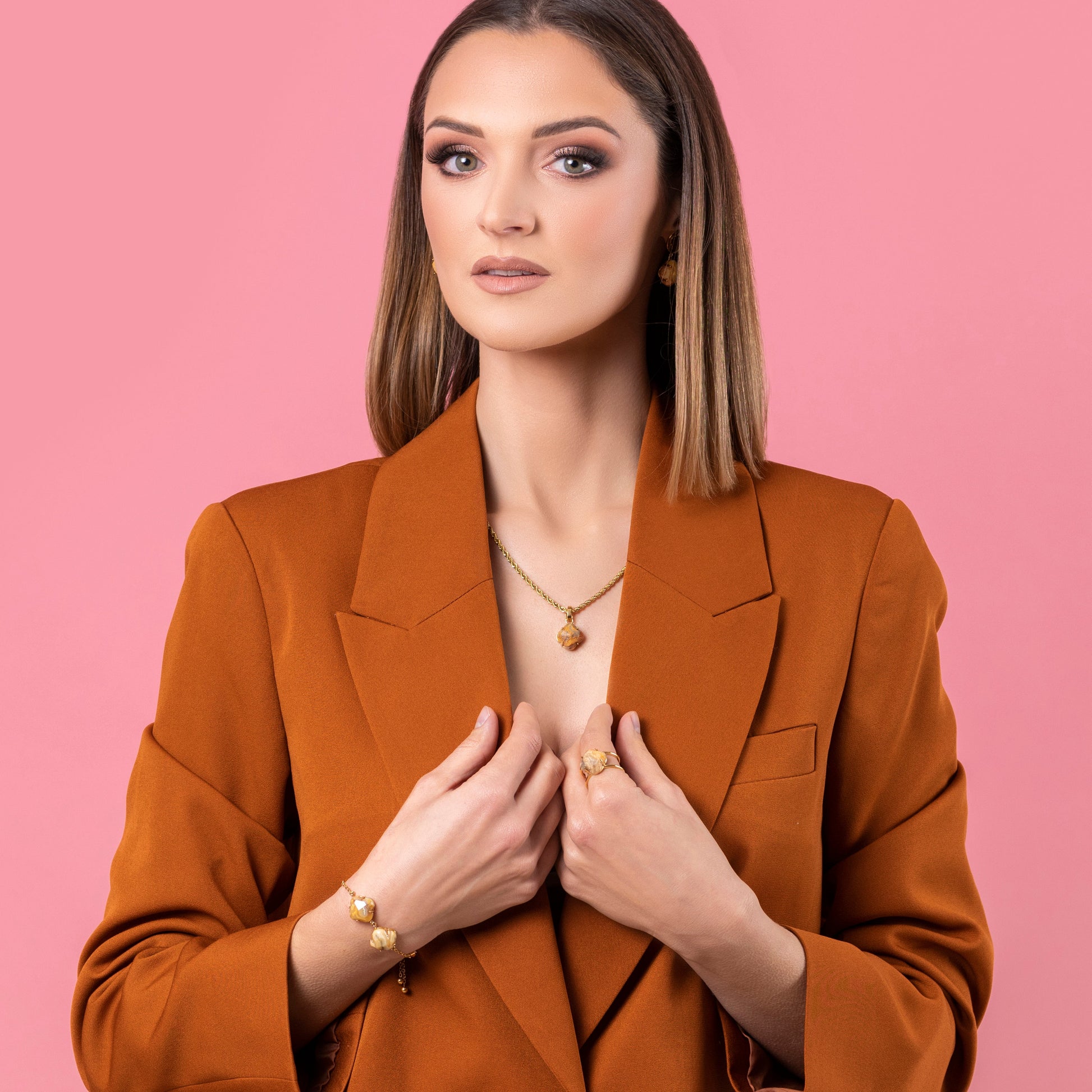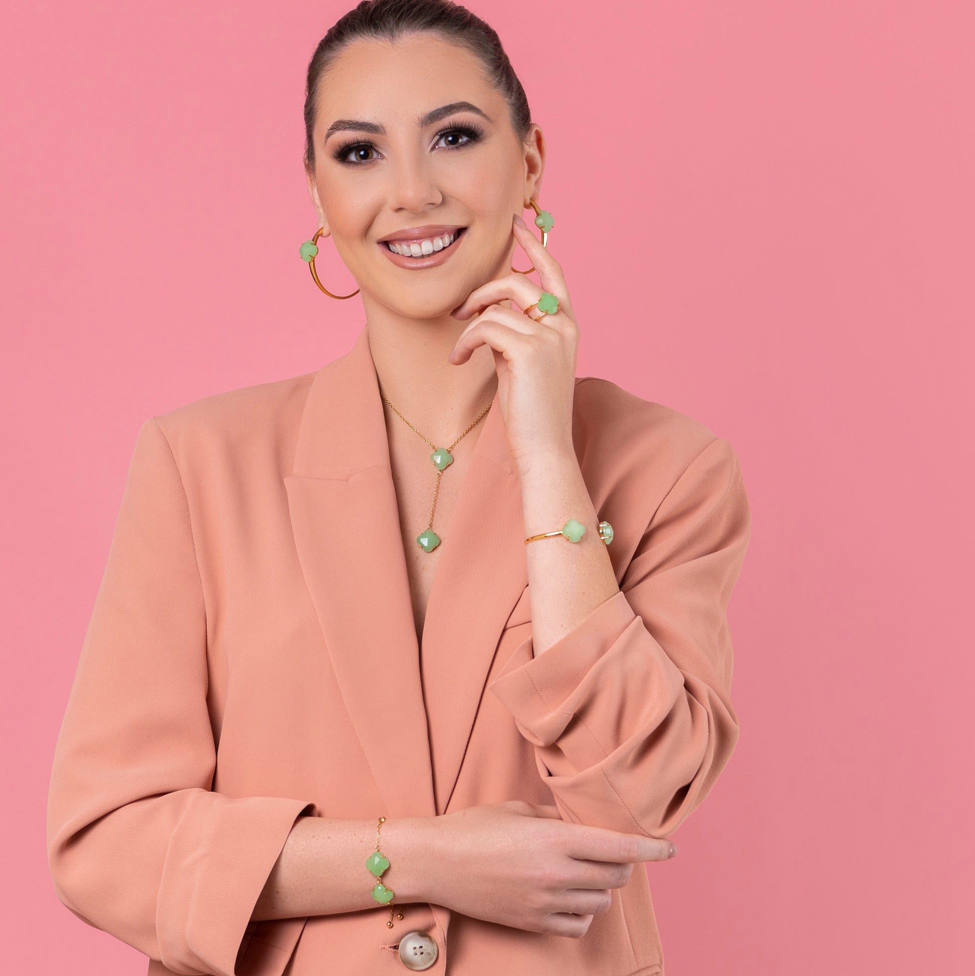 DESCRIPTION With a double stone design, the ‘Stone Station Bracelet’ is a sweet piece that is guaranteed to add a pop of colour to your wrists – what colour you choose to show off is entirely up to you! Made in gold plated stainless steel with a diamond-shaped bead on either side of it, this bracelet is one of the most distinctive models CARISMA currently offers.